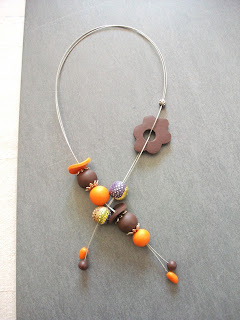 Un collier orange et chocolat dont le montage m'a été montré par Emeu et Nelly à Bar-leDuc , je l'aime beaucoup ,vous pouvez aller voir leurs blogs ,elles font des merveilles .